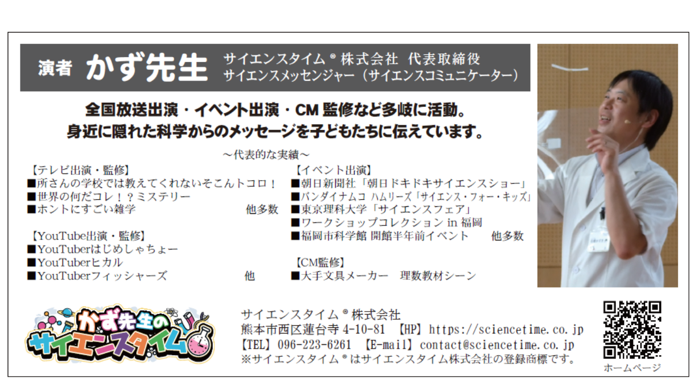 9月13日(土) 🧪人気TV番組・Youtube多数出演🌟かず先生のサイエンスタイム⚗️開催【観覧無料】